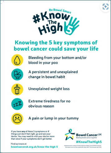 Do you #KnowTheHigh5 symptoms of bowel cancer?