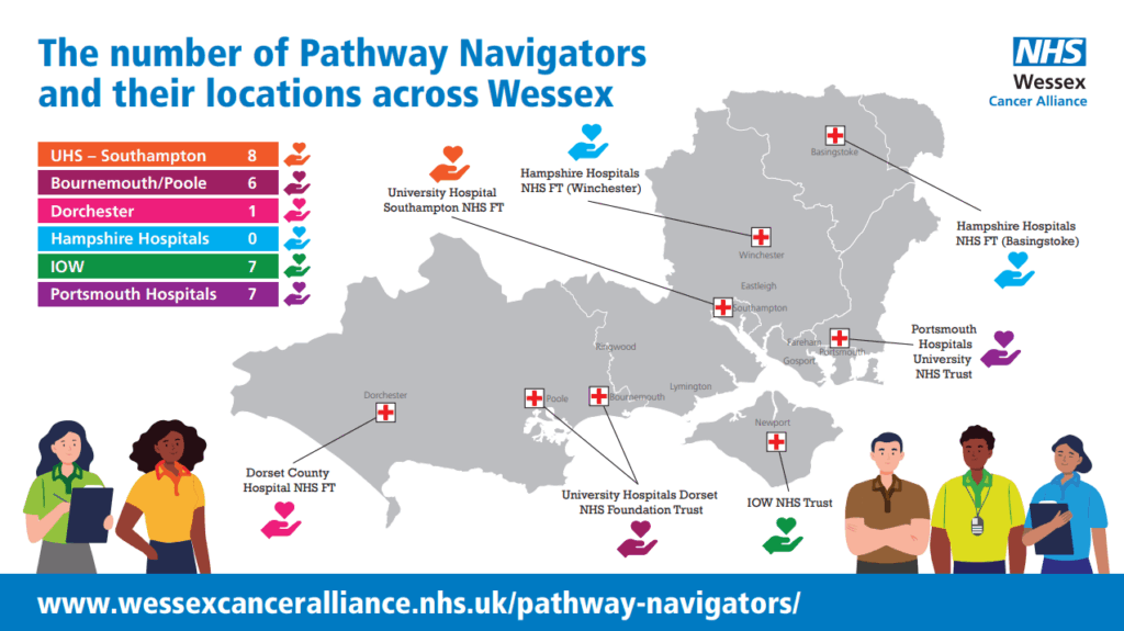 Across Wessex as part of a pilot programme our Trusts recruited a number of navigators across a range of cancer pathways and diagnostic services. In the video below one of our existing Wessex Pathway Navigators, Karen Nutkins talks about some of the skills that are required to be a Pathway Navigator, whilst Dr Alex Hicks tells us what Pathway Navigator roles mean to his team and the patients.